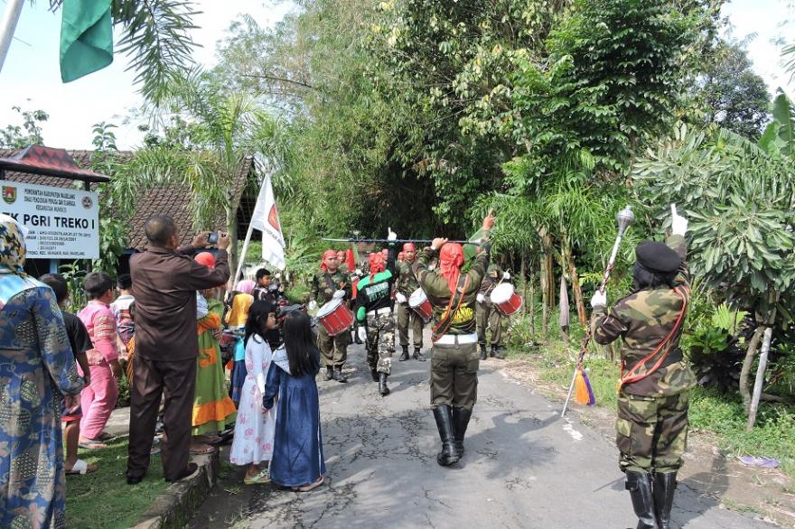 Acara pelantikan berlangsung meriah lantaran diisi oleh hiburan drum band Ansor Banser Kec Mungkid (SORBANMU)