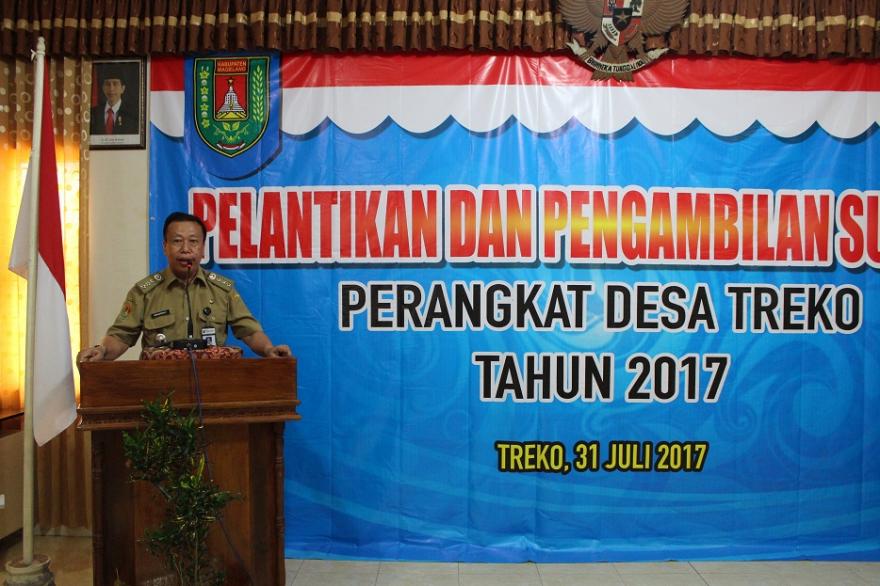 Dalam sambutannya, Kades Treko bapak Wiji Karsono menjelaskan, pengangkatan perangkat desa merupakan jawaban atas kebutuhan Pemerintah Desa dalam rangka meningkatkan pelayanan terhadap masyarakat dan menekankan pentingnya kerja sama dan sinergitas antar perangkat desa.