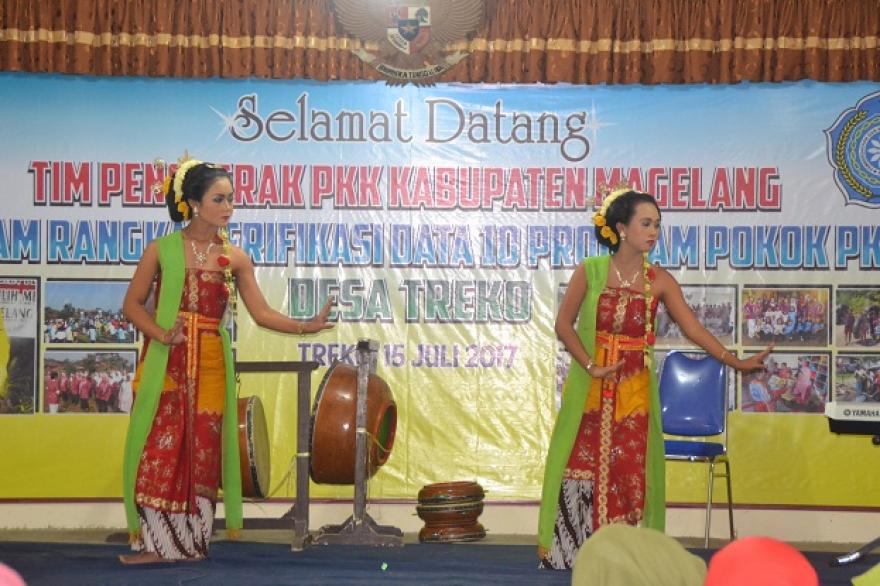 Tim di sambut oleh tarian meumere yang di tarikan oleh para ibu-ibu PKK dan seni rebana oleh siswa siswi SD Negeri Treko 1 serta tarian tradisional tari gambyong.selanjutnya tim melakukan verivikasi diantaranya ke posyandu lansia, rumah sehat dan posyandu balita